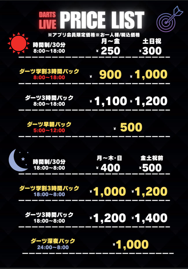 ※ダーツを利用される方はダーツのみのご利用となり、カラオケとの併用利用はできません。