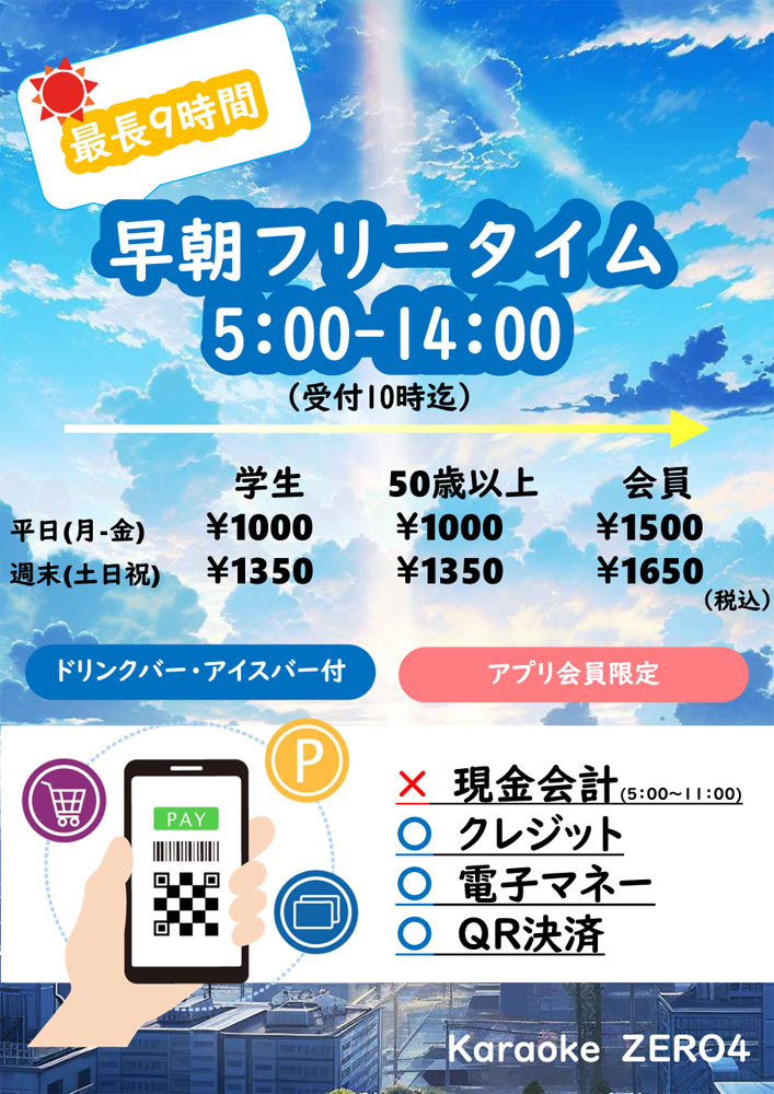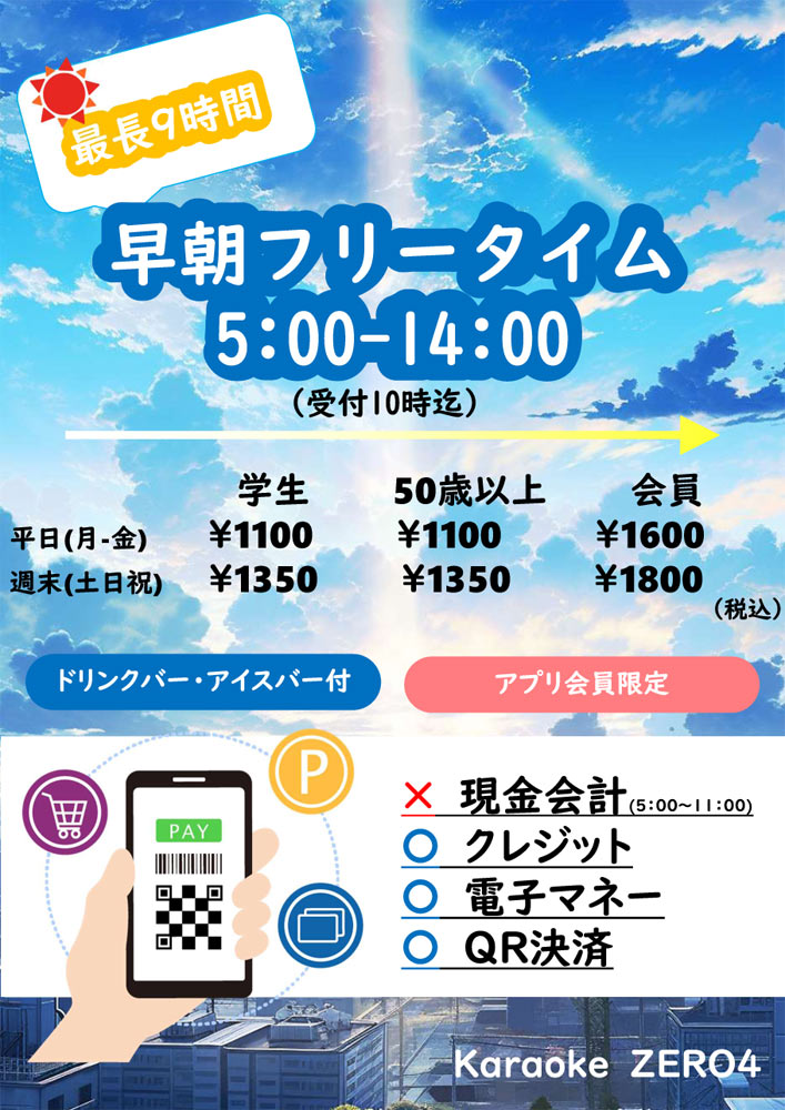 深夜5時~11時は現金会計・有人対応・電話対応不可となります。