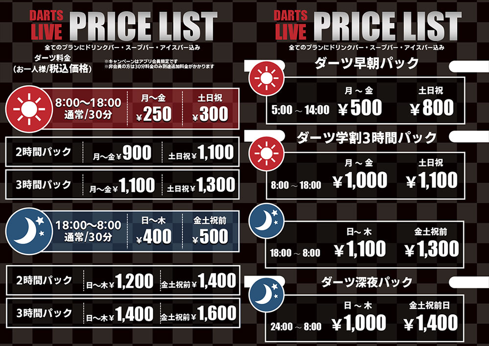 ※ダーツを利用される方はダーツのみのご利用となり、カラオケとの併用利用はできません。