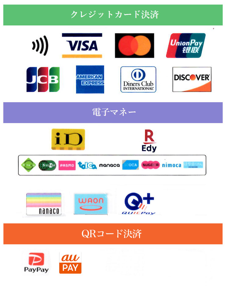 | キャッシュレス | VISA・MasterCard・JCB・AMERICANEXPRESS・DinersCulb・UnionPay・DISCOVER・ID・楽天pay・Kitaca・Suica・PASMO・toica・manaca・SUGOCA・ICOCA・nimoca・はやかけん・WAON・nanaco・QUICPay・paypay・auPAY » 詳しくはこちら |