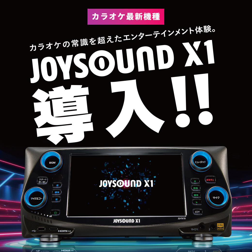 - 2023.12.13【 カラオケ最新機種導入! 】 »最新機種「JOYSOUND X1」を導入しております!