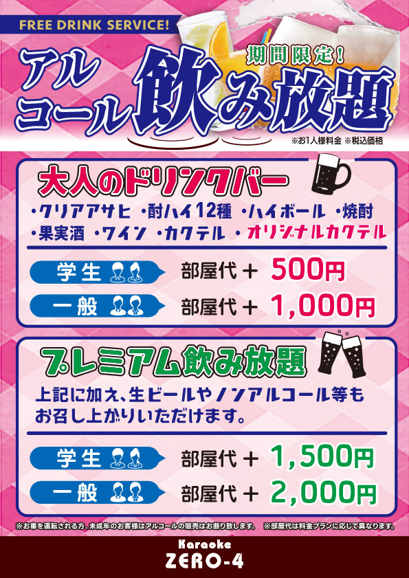 - 2024.11.18【 新 アルコール飲み放題 】 » アルコール飲み放題が時間無制限になりました。