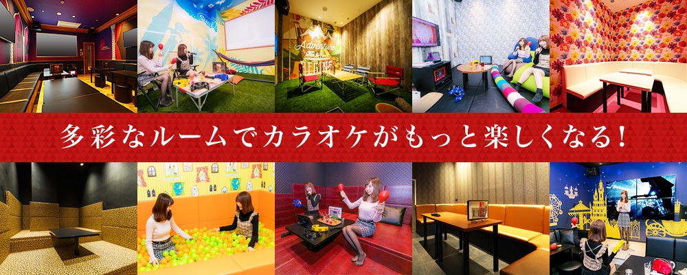 キッズプレイエリア付のお部屋やステージ付のお部屋、ビデオウォール付のお部屋など、 バラエティーに富んだお部屋でお楽しみいただけます!