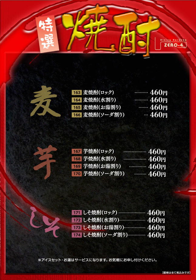カラオケZERO4川西能勢口店のフード&ドリンクメニューです!