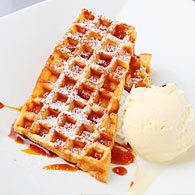 ハニーワッフルのバニラアイス添え
